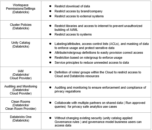 Databricks & your Cloud provider provide platform governance capabilities, which together can provide the required restrictions. These are proactive capabilities to reduce the risk of non-compliance and provide reactive capabilities to enable you to holistically comply with privacy regulations: